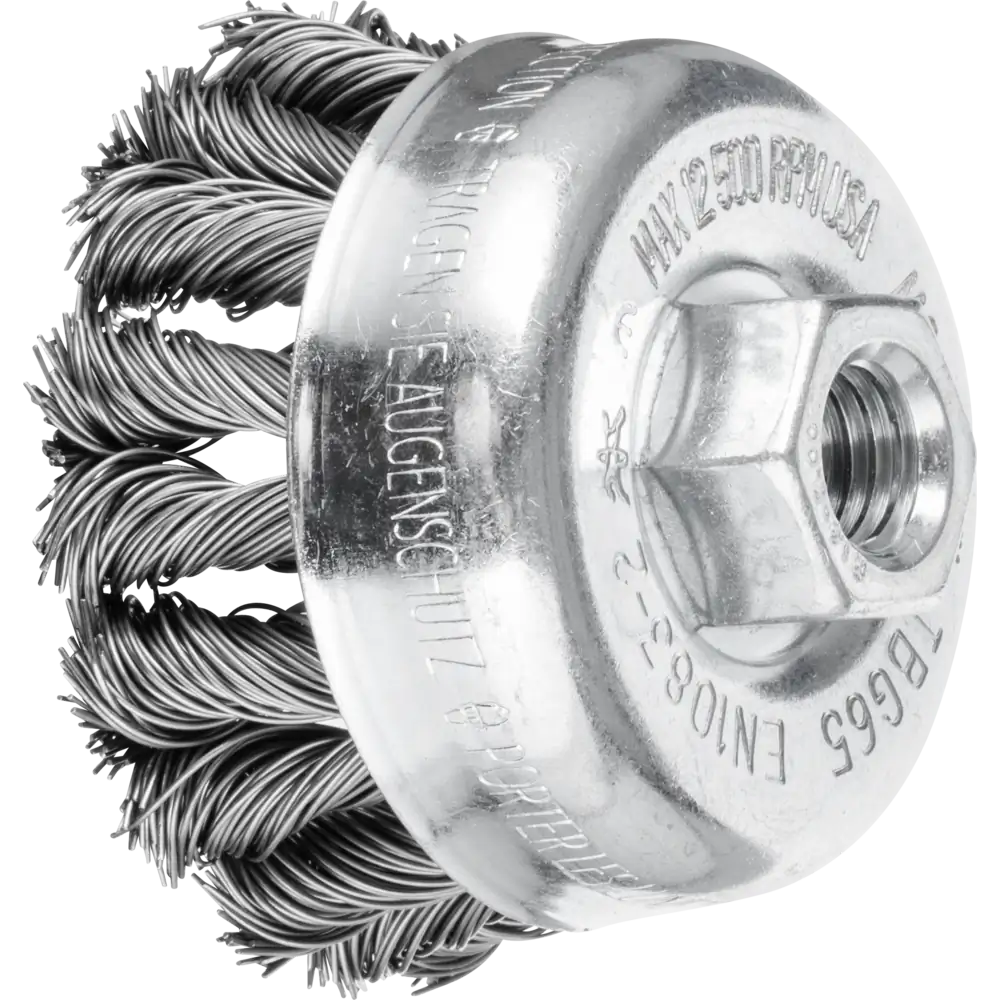 The PFERD COMBITWIST TBG Knotted Cup Brush delivers aggressive, smooth, and durable cleaning performance on steel. Ideal for rust removal, edge work, and weld preparation with angle grinders in professional and industrial environments.