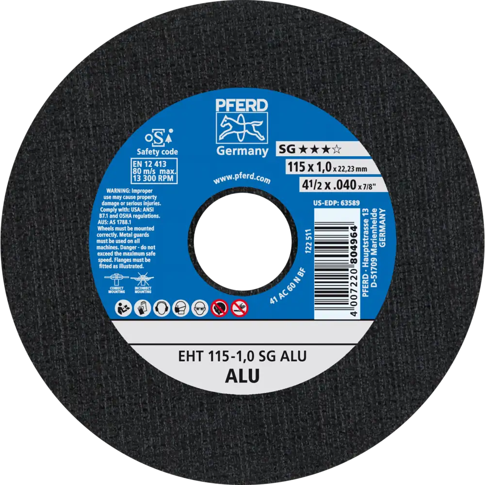 The EHT SG ALU cut-off wheel is engineered to cut aluminium and other non-ferrous metals quickly and cleanly. Its special abrasive blend prevents clogging, ensuring smooth operation and long service life. Cuts are burr-free and safe, while its slim design provides efficiency and operator comfort. Ideal for cutting sheet metal, profiles, solid materials, and creating holes, it is a reliable choice for non-ferrous applications.