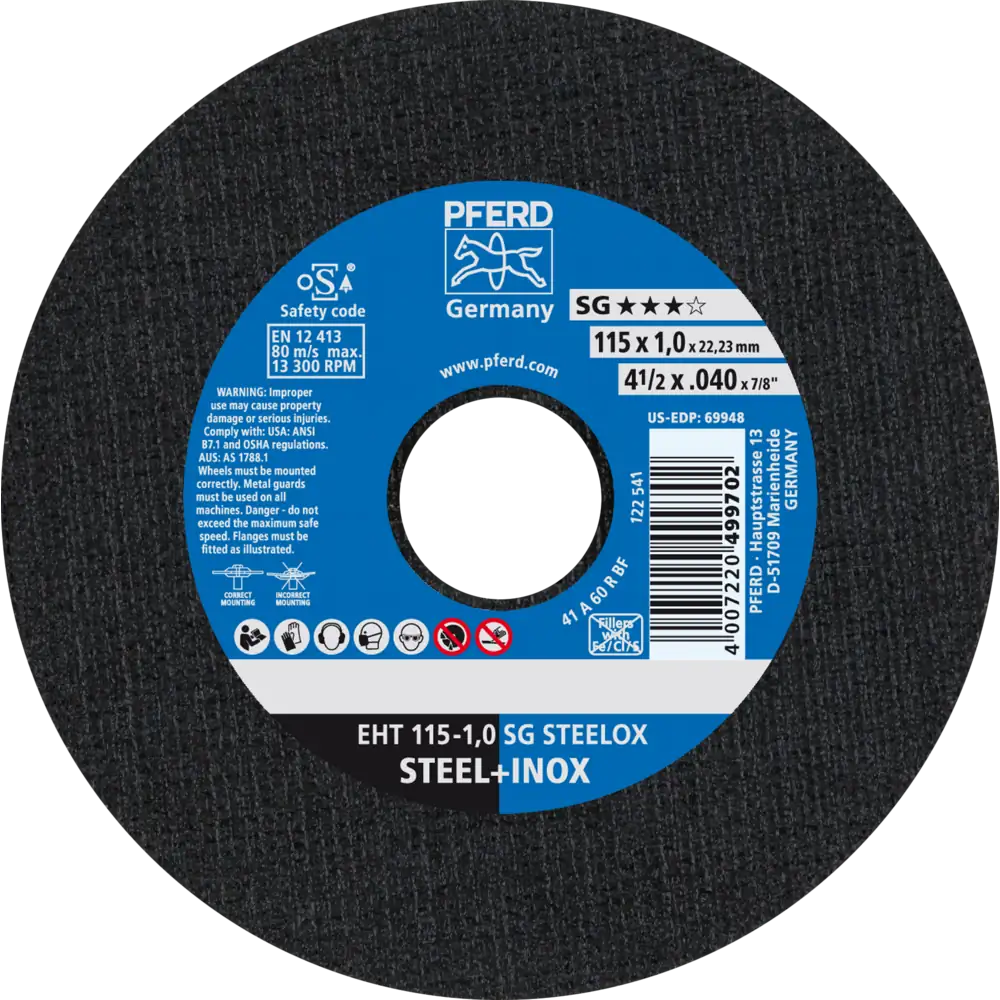 The EHT SG STEELOX cut-off wheel combines speed, safety, and durability for everyday steel and stainless steel cutting tasks. It delivers burr-free cuts with high economic efficiency, making it a dependable tool for workshops and professionals. Ideal for cutting profiles, sheet metal, solid materials, and holes, it ensures consistent results and long-lasting performance.